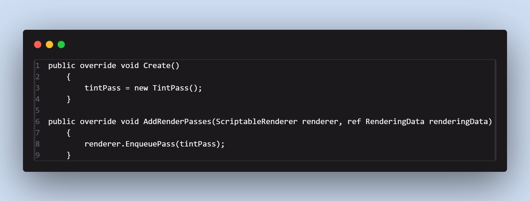 A 'TintRendererFeature' and a 'CustomPostScreenTint'.